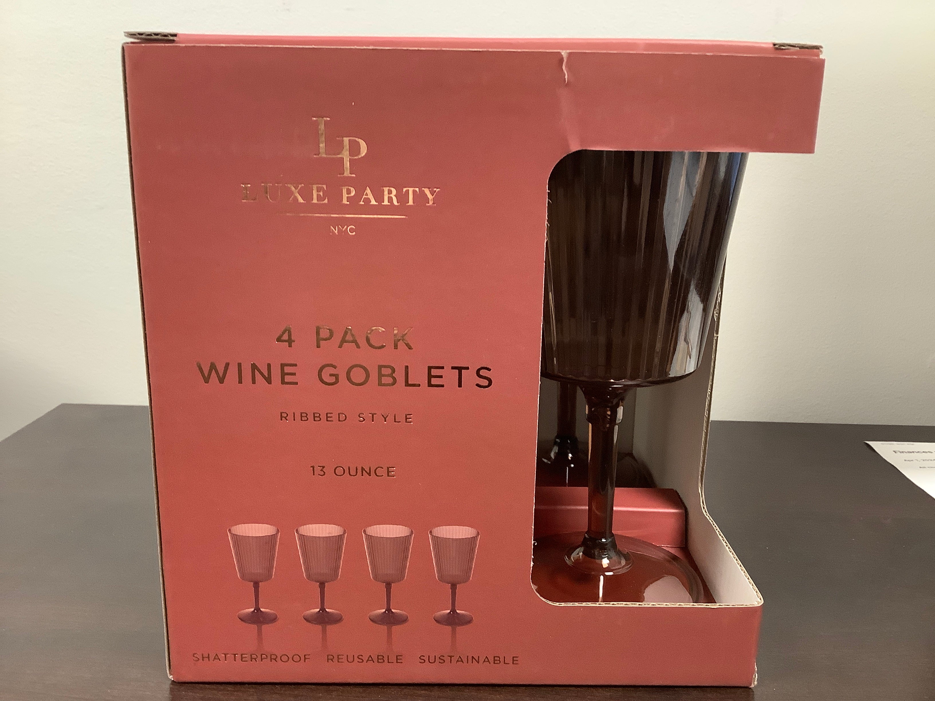 Plastic Stemware - 4pk Deluxe Ribbed Wine Goblet - 13oz