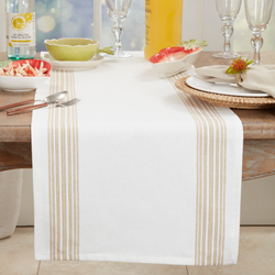 Tablecloths - Spill Proof Linen Look 3 Gold Straight Lines