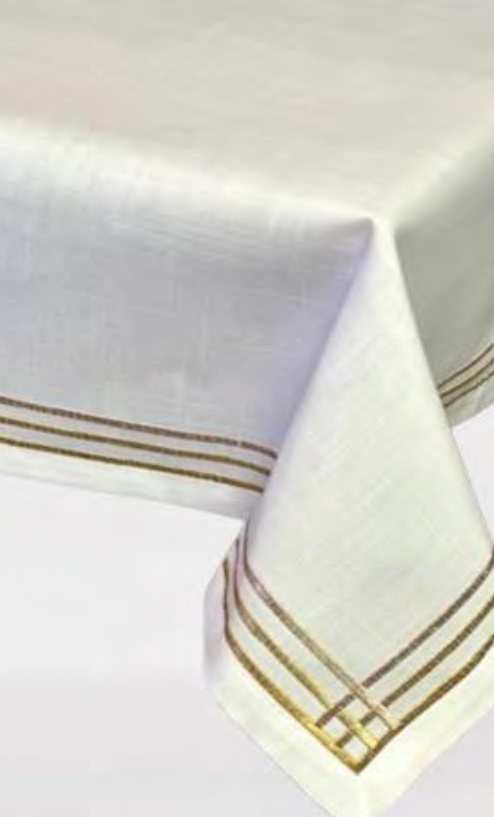 Tablecloths - Spill Proof Linen Look 3 Gold Straight Lines