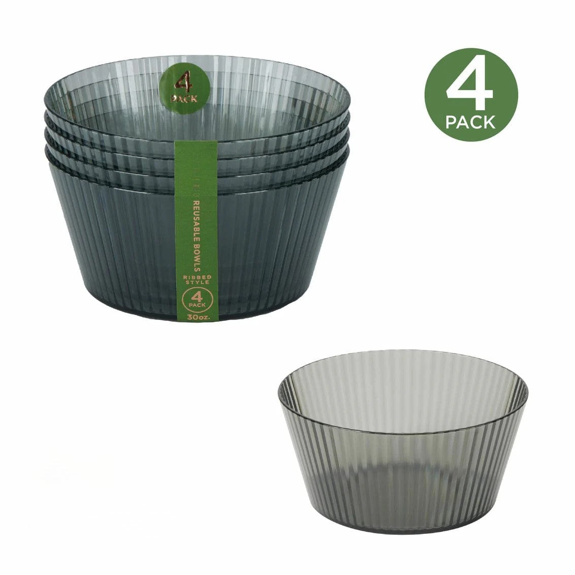 This ribbed serving bowl features a sleek design crafted from durable plastic, ideal for elegant presentation and everyday use.