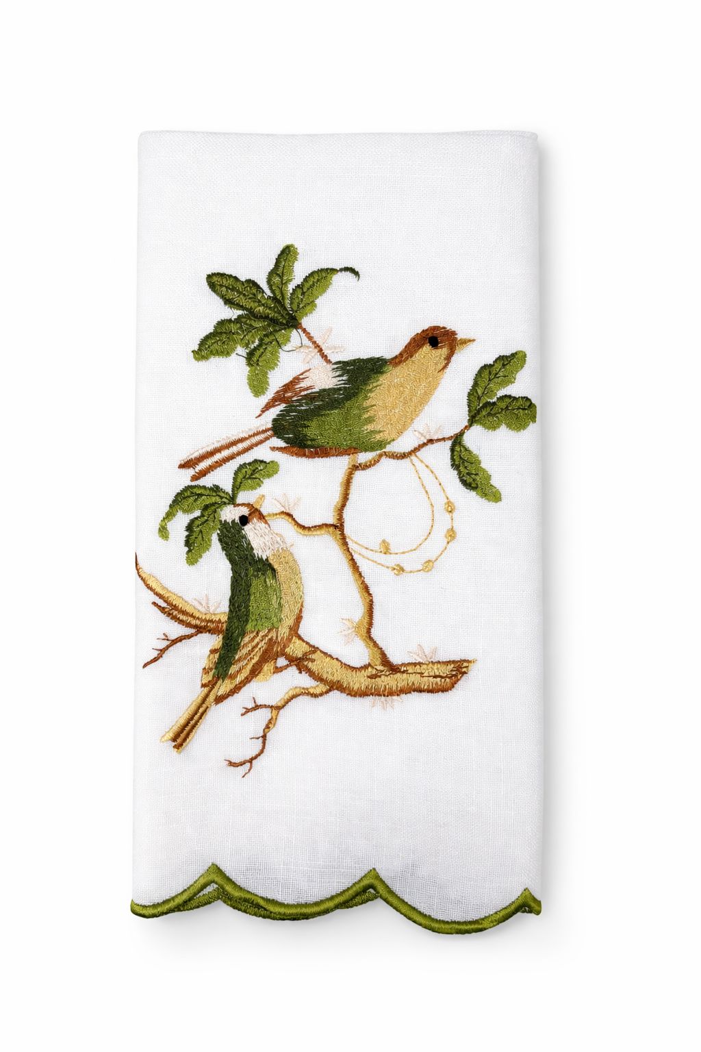 Cloth Napkin - Two Green Birds On Branch Napkin 4 Per Pack