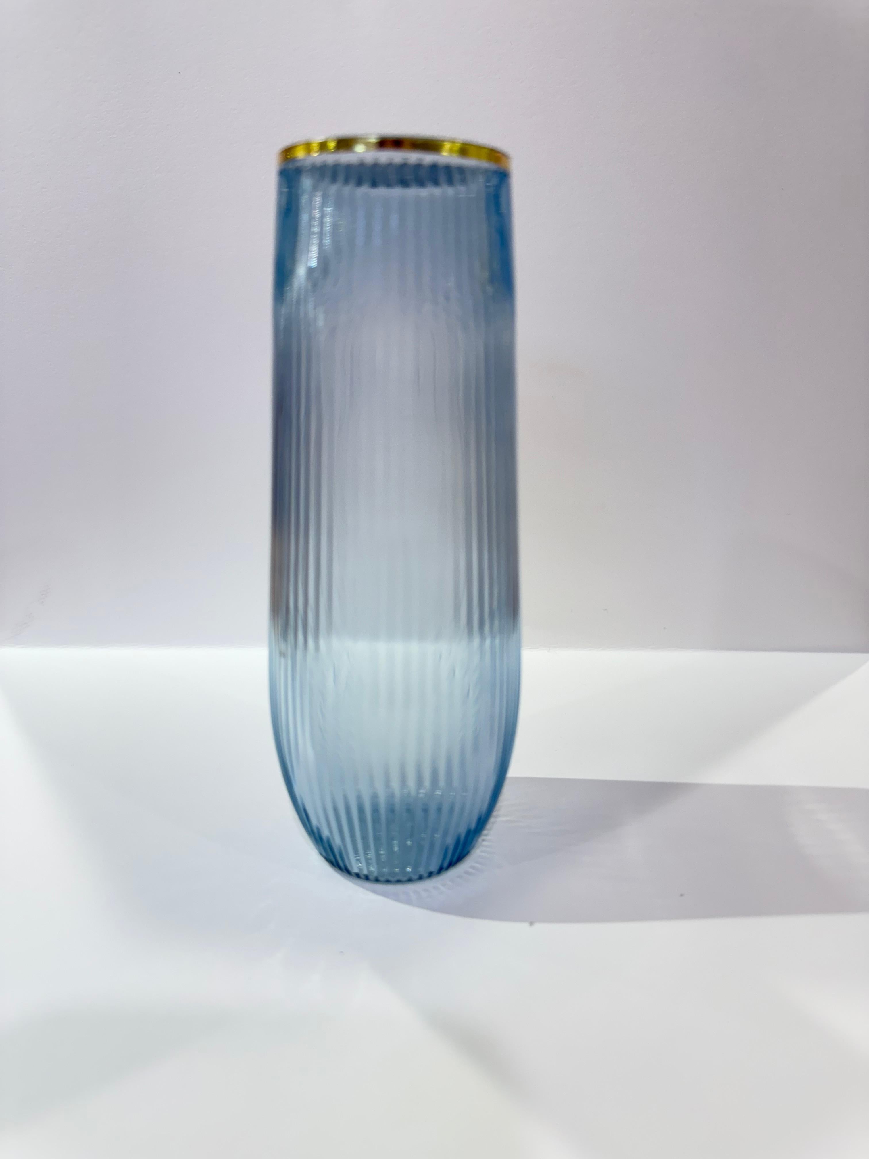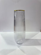 Precision-engineered ribbed stemware designed for refined service. The vertical ribbing creates visual dimension and tactile interest, while the gold rim provides a polished finishing detail. This collection offers two distinct capacities: 9 oz champagne flutes for aperitifs and sparkling beverages, and 12 oz goblets suited for wine service and cocktails. The textured surface enhances stability and reduces light reflection, delivering both aesthetic sophistication and practical performance for elevated entertaining.