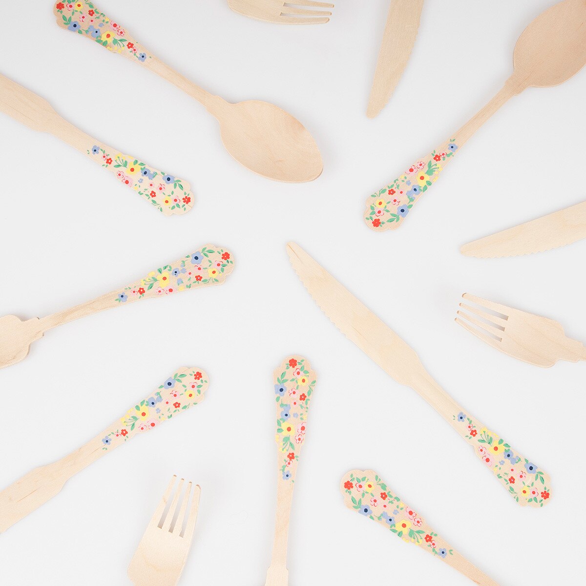 Disposable Cutlery - Elegant Floral Wooden Cutlery Set