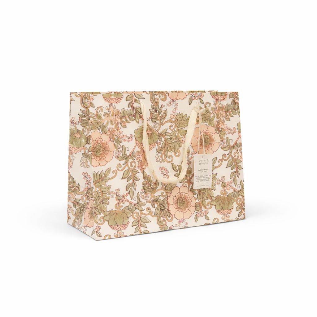 Every bag is hand block printed using traditional techniques, making each piece a little work of art. Finished with soft cotton rope handles and a matching swing tag sharing the story behind the bags.