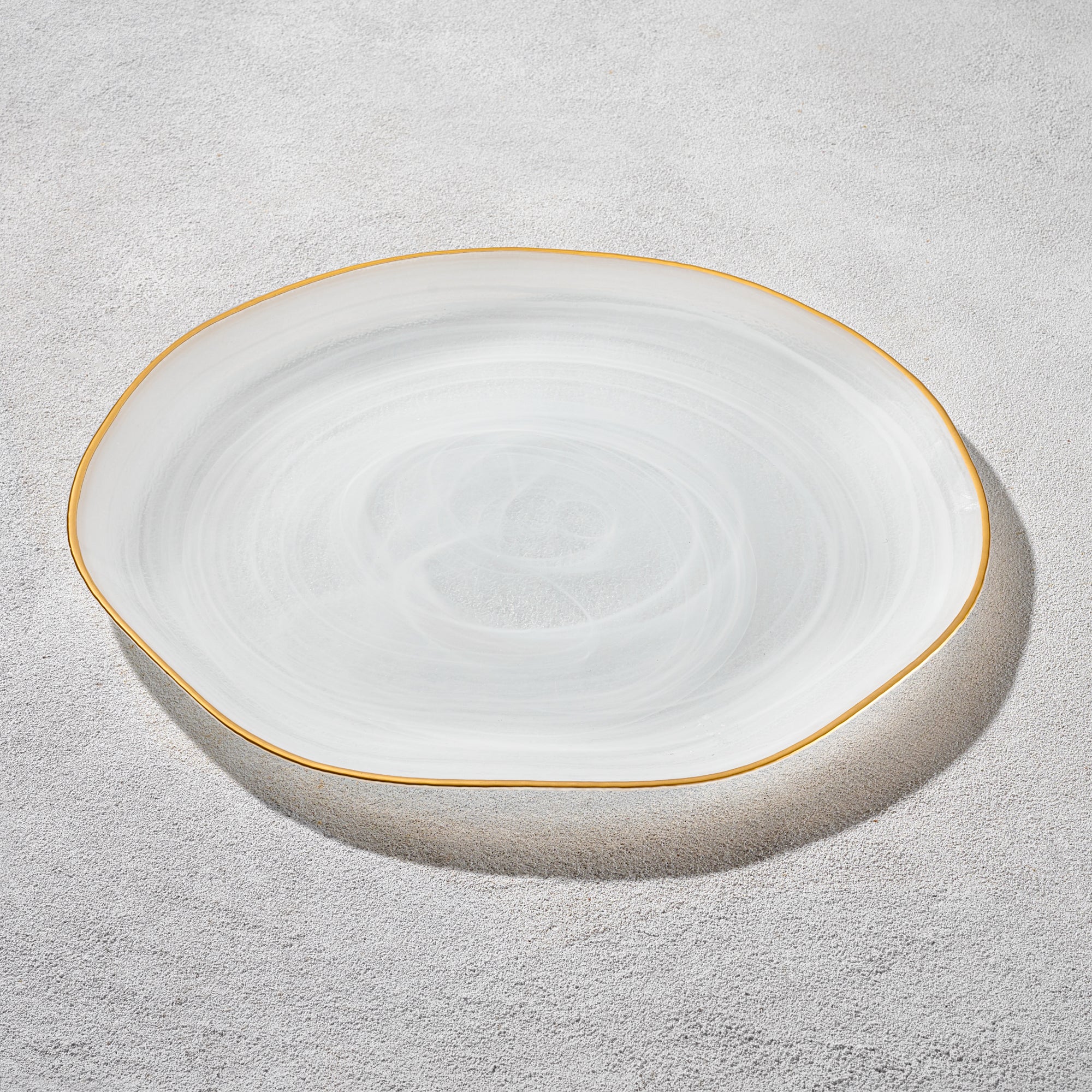 Glass Charger - Cedar Glass Charger White Alabaster with Gold Rim