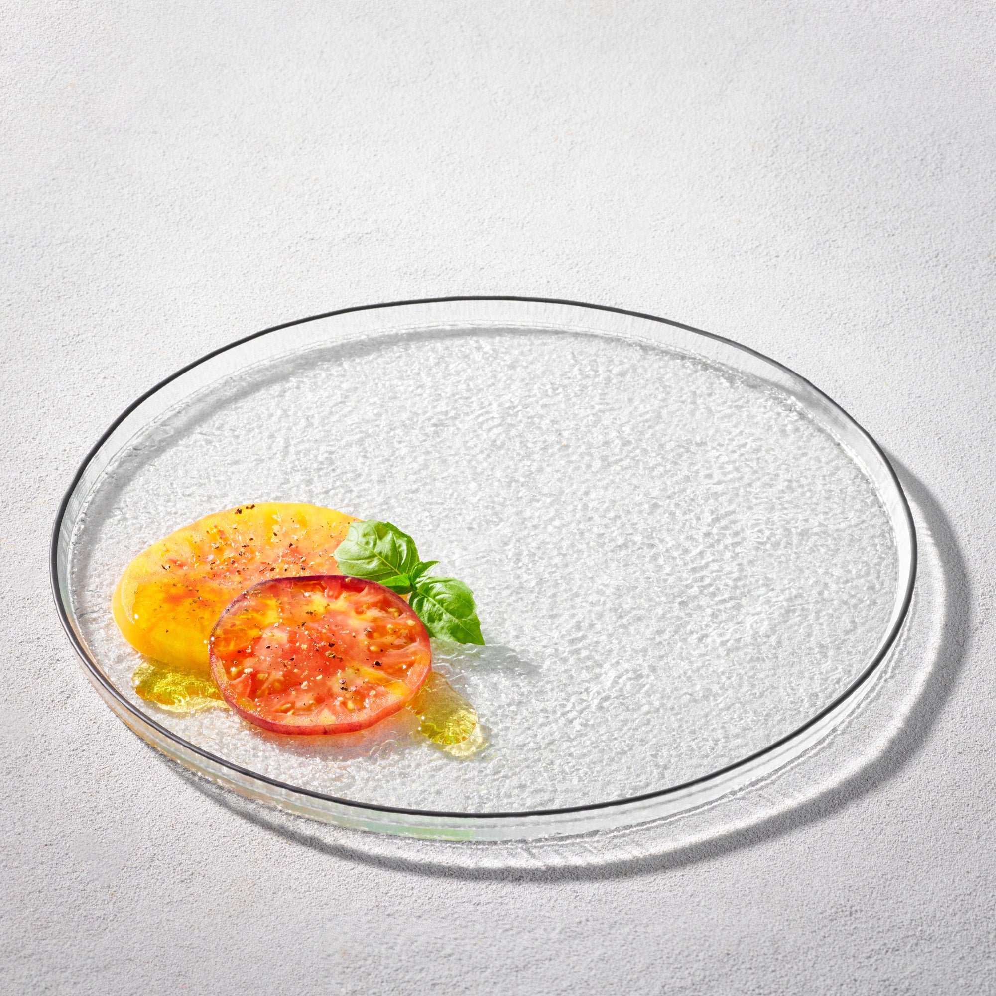 Elevate your dining experience with this elegant glass charger. Its refined design adds a touch of sophistication to any tablescape, creating a perfect foundation for your dinnerware and enhancing the overall ambiance of your gatherings.