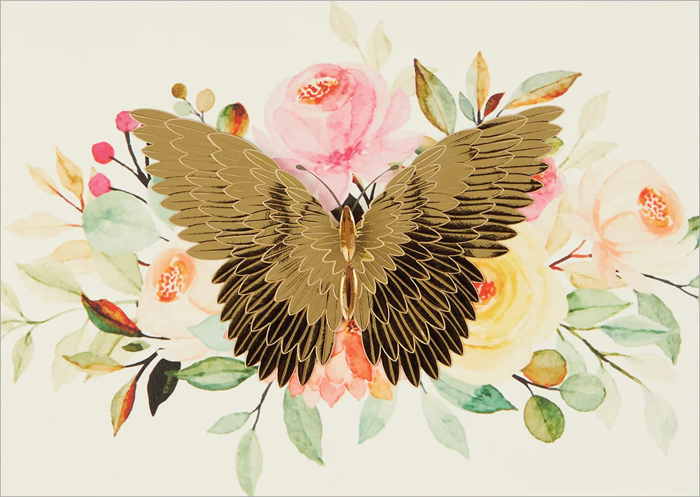 Card - Gold Butterfly On Flowers