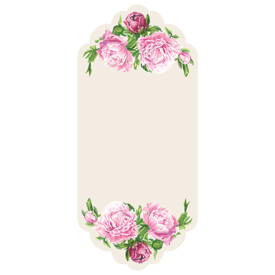 The softness and abundance of peonies are welcome at any setting, and we love bringing in the blooms with this versatile table card. Used horizontally as an exuberant place card or welcome, or vertically for menus and more, this piece is a wonderful addition to settings throughout the season.
