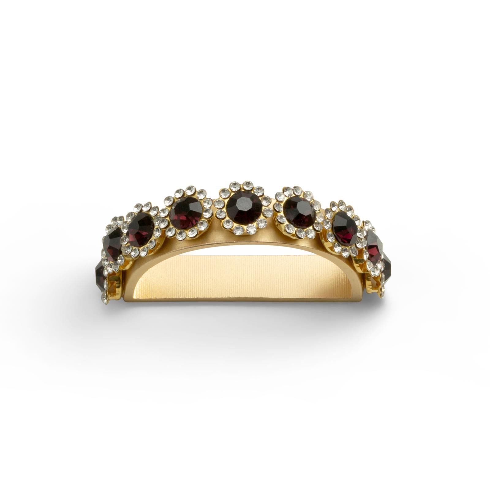 Elevate your table setting with these handcrafted gold bar napkin rings, each uniquely adorned with a curated blend of colored stones, pearls, and diamonds. Perfect for special occasions or everyday luxury, these statement pieces add sophistication to any dining experience. Presented in an upscale velvet pouch, they make an exceptional gift for those who appreciate fine tableware and artisanal craftsmanship.