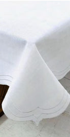 Tablecloth -Spill Proof Linen Look 3 Layers Scalloped Edge Tablecloth