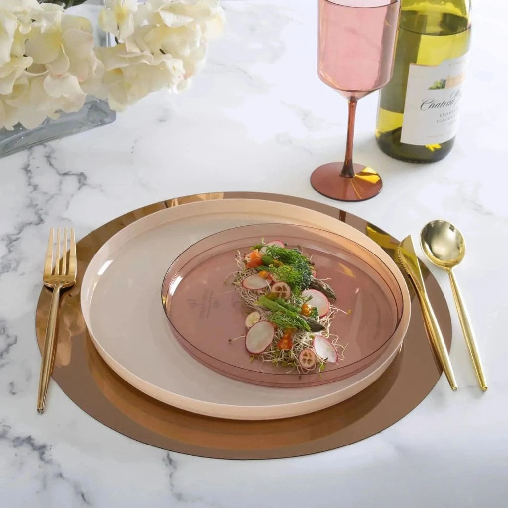 Enhance your table with this 13" round mirrored charger, designed to add a refined and elegant touch to any dining setting.