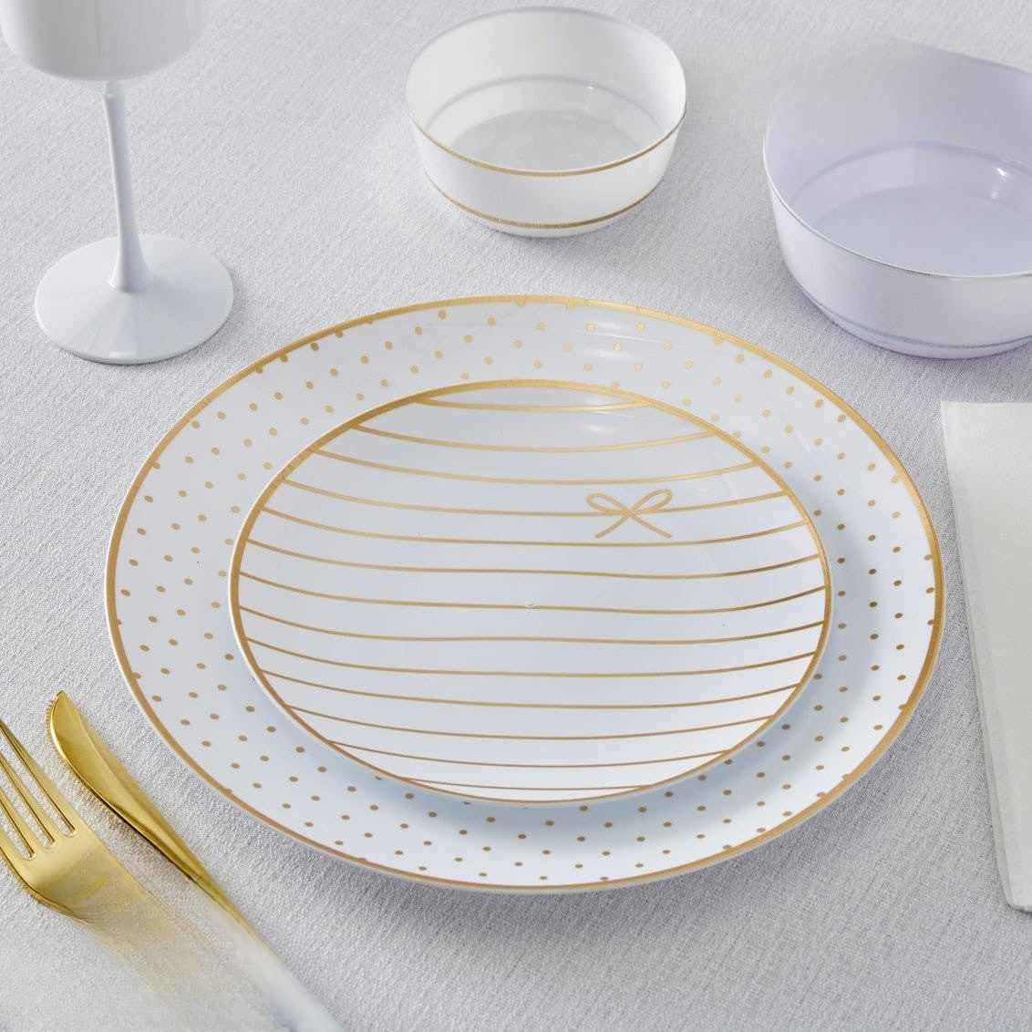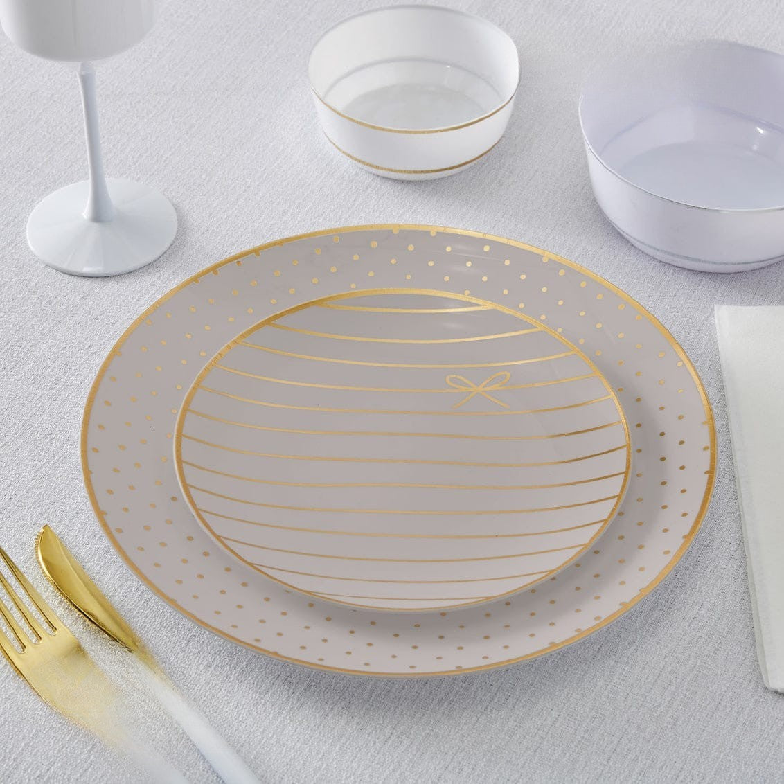 Elevate your table setting with this versatile two-piece plate combo. Each set includes a dinner plate and coordinating salad plate, perfect for everyday meals or special occasions. Choose from three sophisticated finishes—soft pink, crisp white, or warm linen—to match your décor and personal style. Durable and elegant, these plates bring a touch of refinement to any gathering.