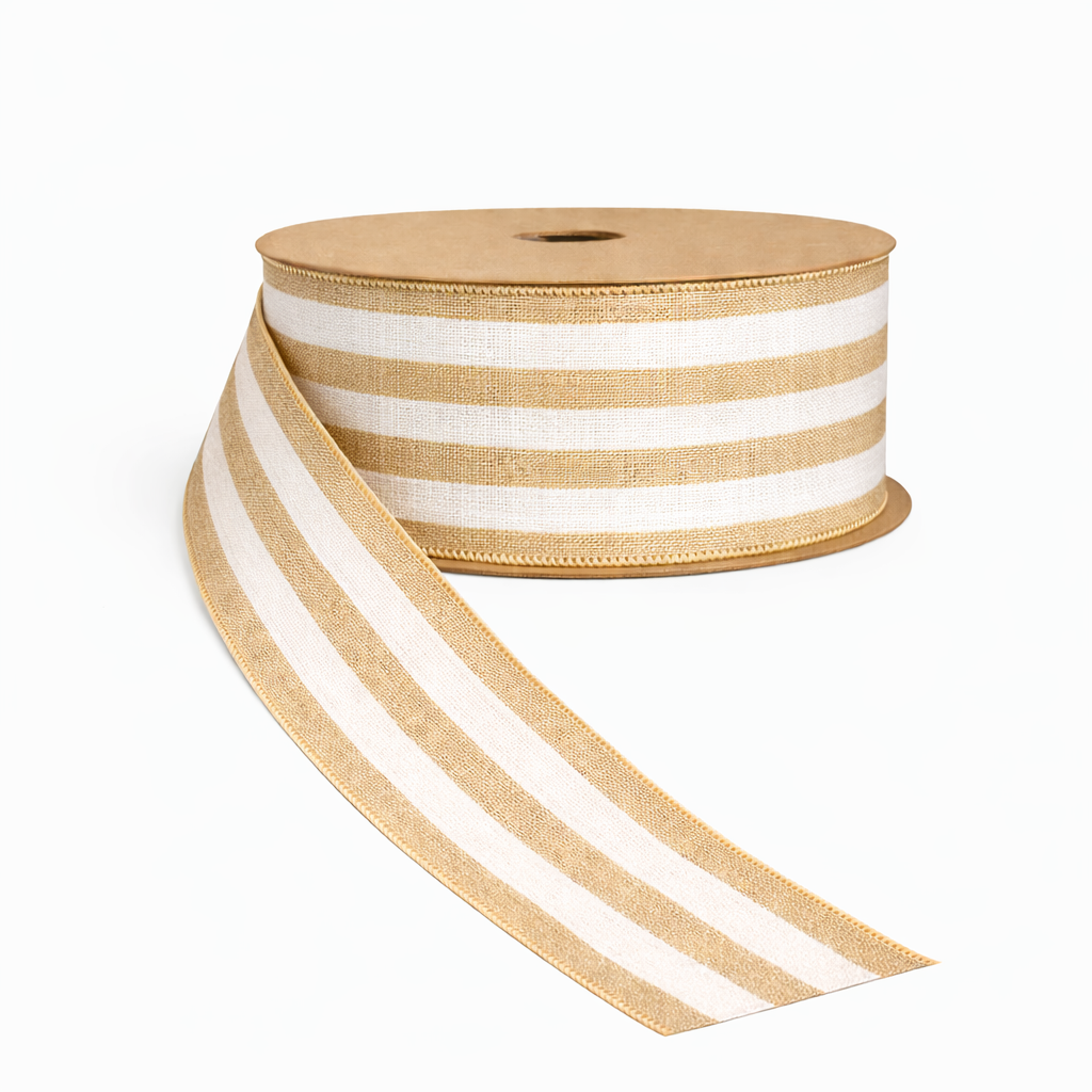 Ribbon - Bold Stripe Linen Wired Edge