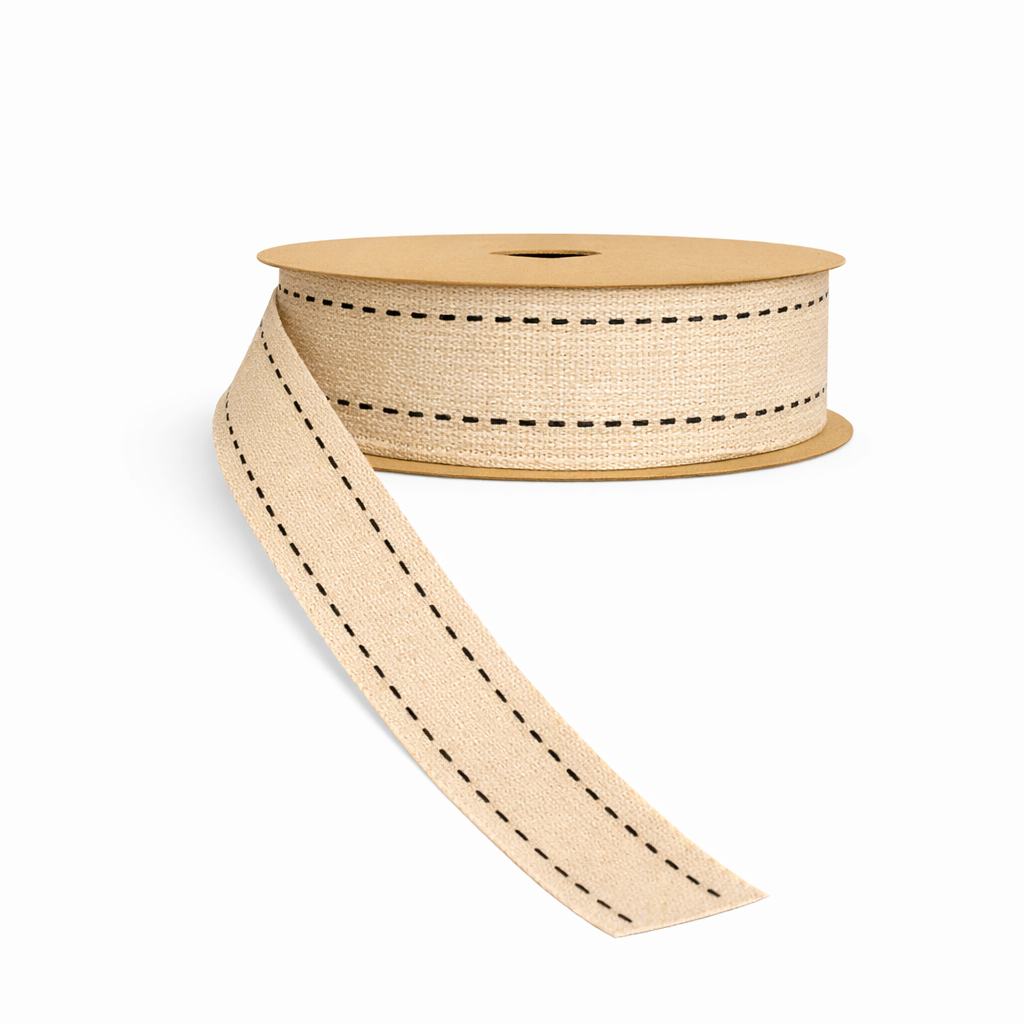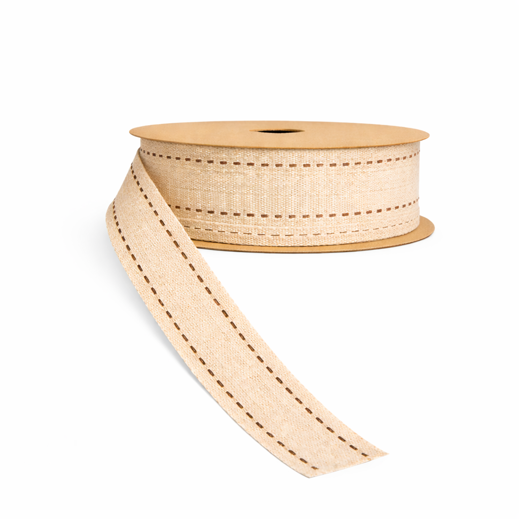 Ribbon - Faux Burlap with Stitching 1 1/2"
