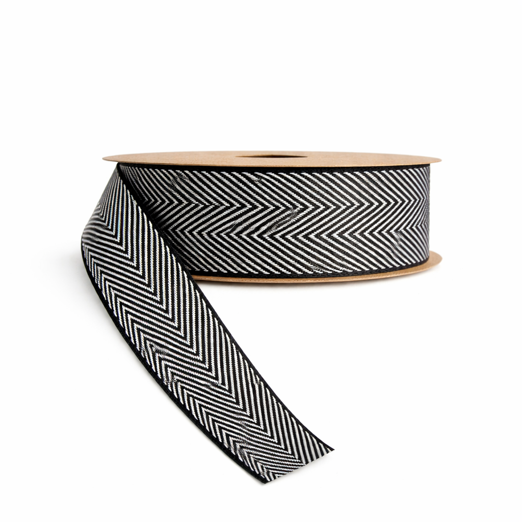 Ribbons - Black Chevron Herringbone Ribbon 1 1/2"