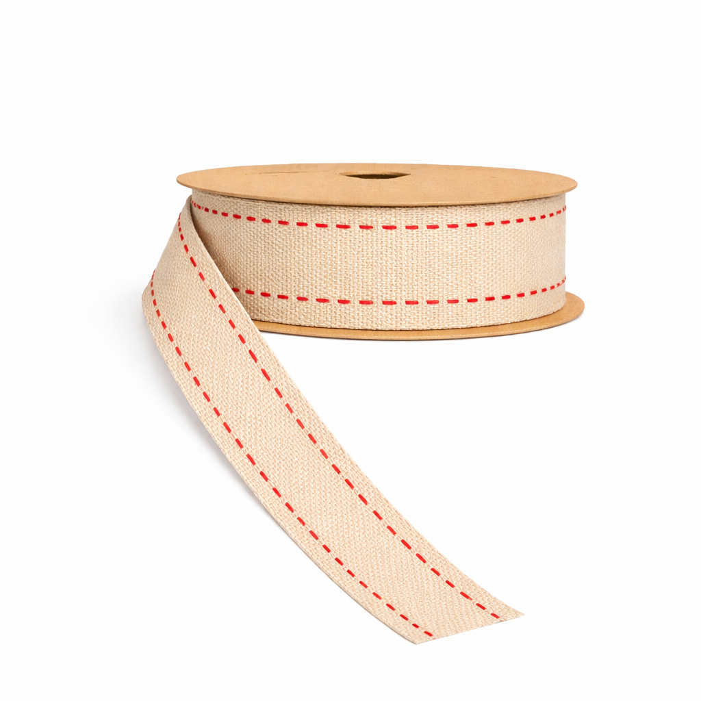 Ribbon - Faux Burlap with Red Stitching