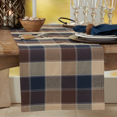 Table Runner - Stitched Brown Plaid Runner 16" x 90"