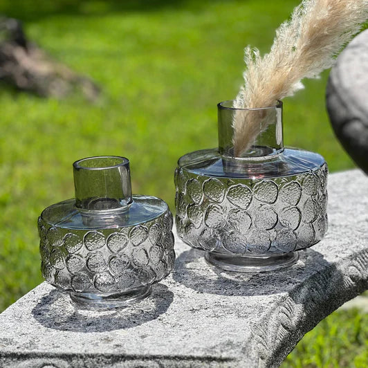 This short neck vase showcases a delicate strawberry-shaped pattern and is offered in two colors and sizes. Its graceful design adds a serene and charming element to any interior, making it perfect for displaying small blooms or enhancing your decor with a subtle, nature-inspired touch.