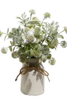 Elevate your table with this elegant ceramic pot featuring a copper coin ball faux plant. Its timeless design brings natural beauty without the upkeep, perfect for adding a sophisticated touch to any room. The carefully crafted faux flowers offer lasting charm and effortless style.