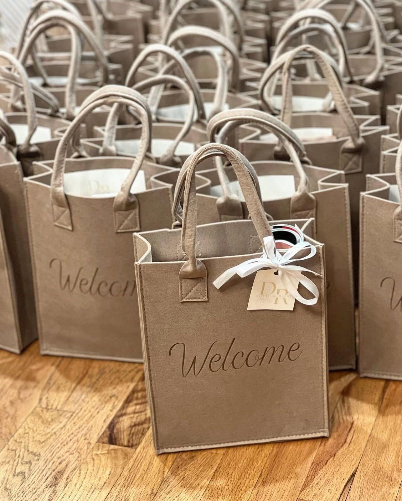 Set the perfect tone for entertaining with this elegant felt welcome bag in warm beige. Designed to greet your guests with thoughtfulness, this versatile hostess essential works beautifully for dinner parties, celebrations, or special occasions. The neutral hue complements any table setting while the quality felt construction ensures durability through multiple uses. Fill it with favors, place cards, or small gifts to create a memorable first impression that reflects your attention to detail and refined taste.
