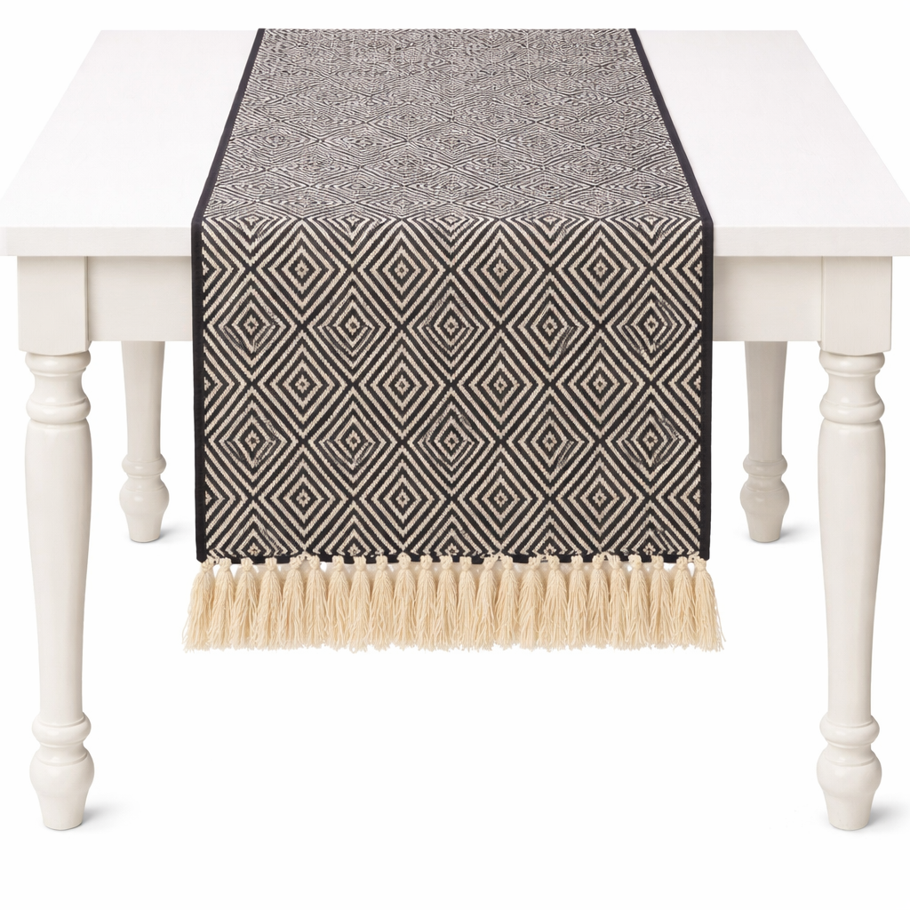 Navy blue cotton runner with a subtle diamond weave texture. Crafted from soft, durable cotton that's gentle on fine tableware and easy to care for. The classic navy hue complements any table setting, from casual dinners to formal occasions. Perfect for protecting your table surface while adding understated elegance to your tablescape. Machine washable for convenient maintenance.