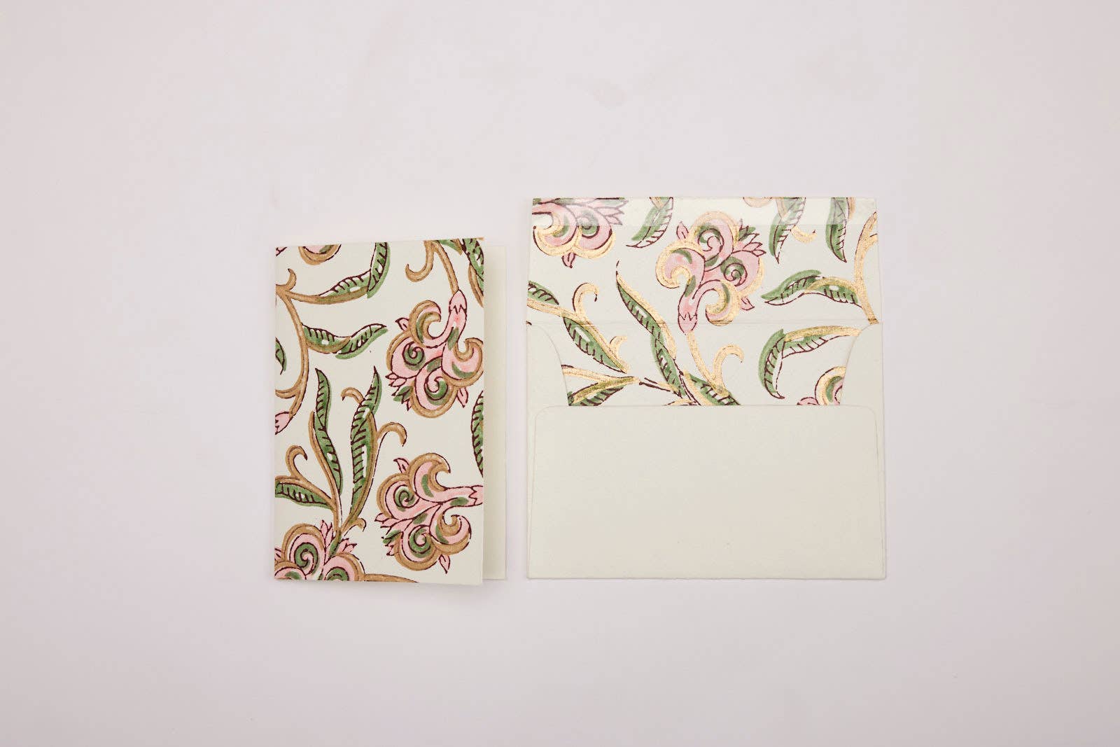 Luxury block printed greeting cards is a real delight for any stationery lover. Each card is hand block printed by a skilled artisan on luxurious tree-free 250gsm cotton cardstock and is accompanied by a luxury peel and seal envelope which is hand block printed in the matching on the reverse for understated appeal.