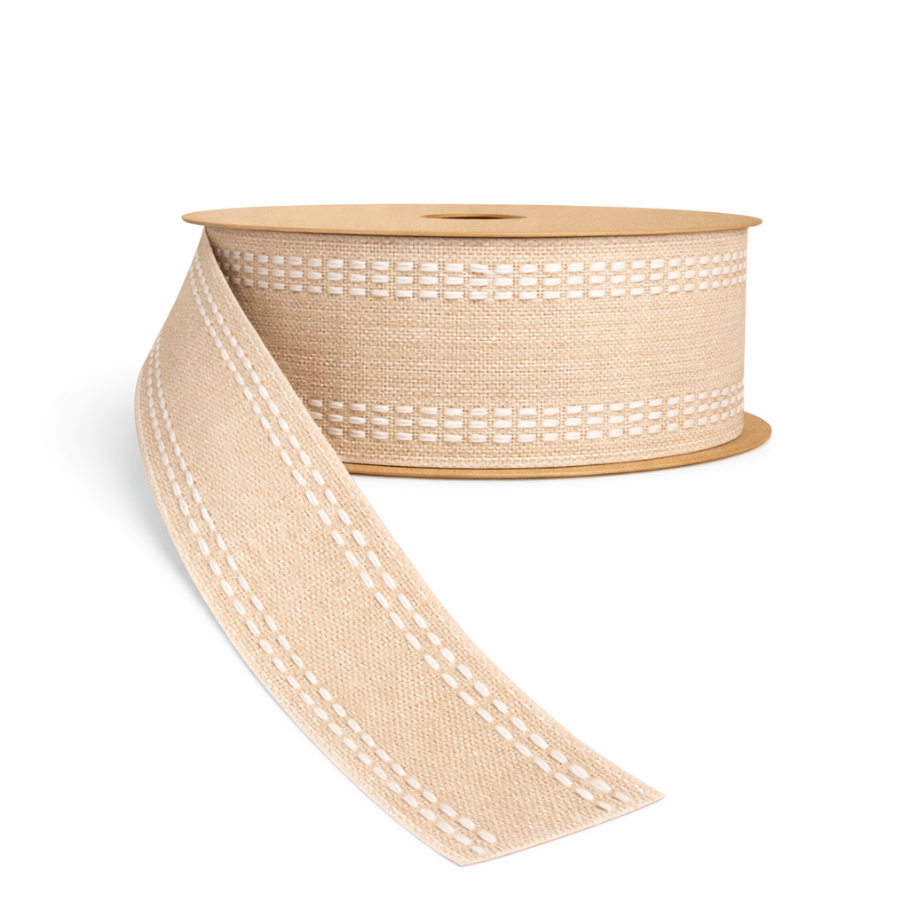 Ribbon - Faux Burlap with Stitching 1 1/2"
