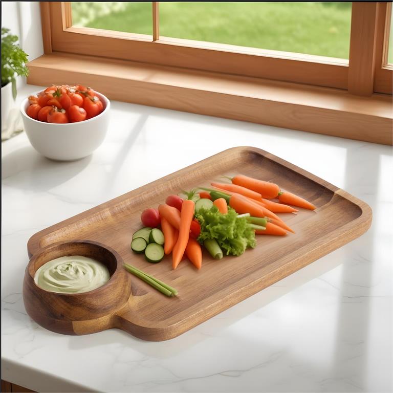 Wooden Serving Trays - L. Gourmet Acacia Wood One Dip Serve Board